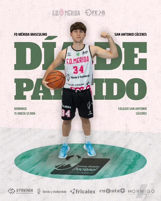 Verde y Sostenible Mérida Masculino inicia el año 2026 este domingo 11 de enero, a las 12:00 horas, frente a San Antonio Cáceres Basket, en la undécima jornada de la